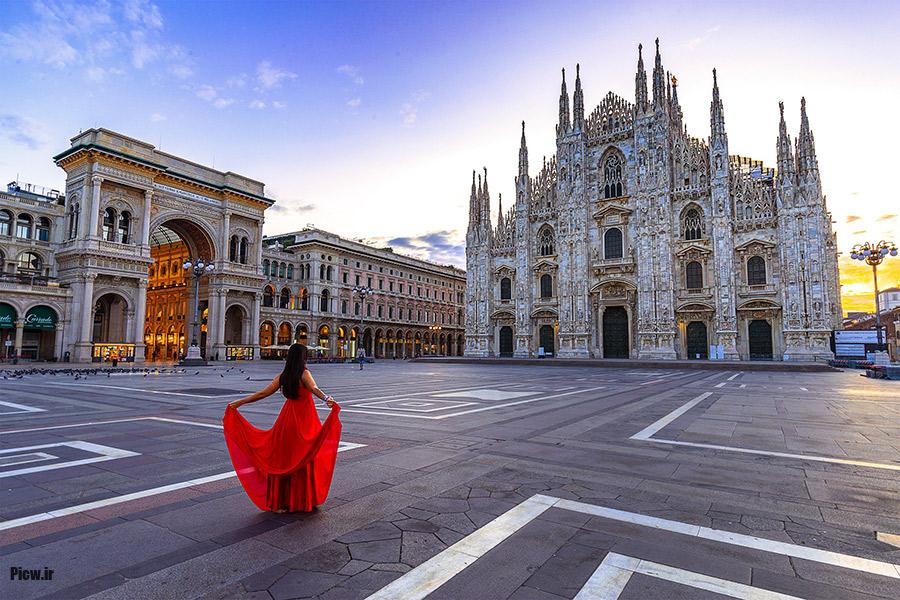 قلب تاریخی و معنوی شهر، کلیسای جامع میلان (Duomo di Milano) است. این شاهکار معماری گوتیک که ساخت آن چندین قرن به طول انجامید، با مناره‌ها و مجسمه‌های بی‌ شمارش، یکی از بزرگ‌ترین و باشکوه ترین کلیساهای جهان به شمار می‌رود و چشم‌ انداز پانورامای شهر از تراس‌های آن بسیار دیدنی است. در مجاورت دوئومو، گالری ویتوریو امانوئل دوم (Galleria Vittorio Emanuele II) قرار دارد، یک گذرگاه تجاری لوکس با سقف شیشه‌ای و تزئینات غنی، که نمادی از شکوه مد و تجارت میلان است.