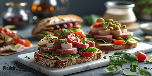 این ساندویچها با استفاده از ترکیب رنگها، بافتها و شکلهای خاص، شبیه آثار هنری مدرن طراحی میشوند. استفاده از سبزیجات رنگارنگ، نانهای متفاوت و مواد اولیه تازه، باعث میشود هر ساندویچ یک شاهکار کوچک باشد.